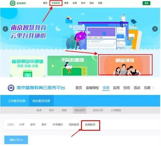 打开金陵微校后,点击“精品课例”里面的“疫情教育”,该平台同时支持PC端、移动端登录。
