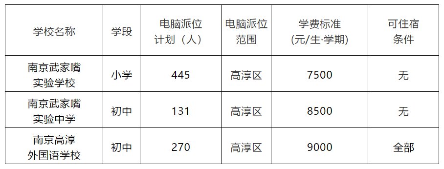 2.南京武家嘴实验中学、南京高淳外国语学校和面向全市招生的初中学校