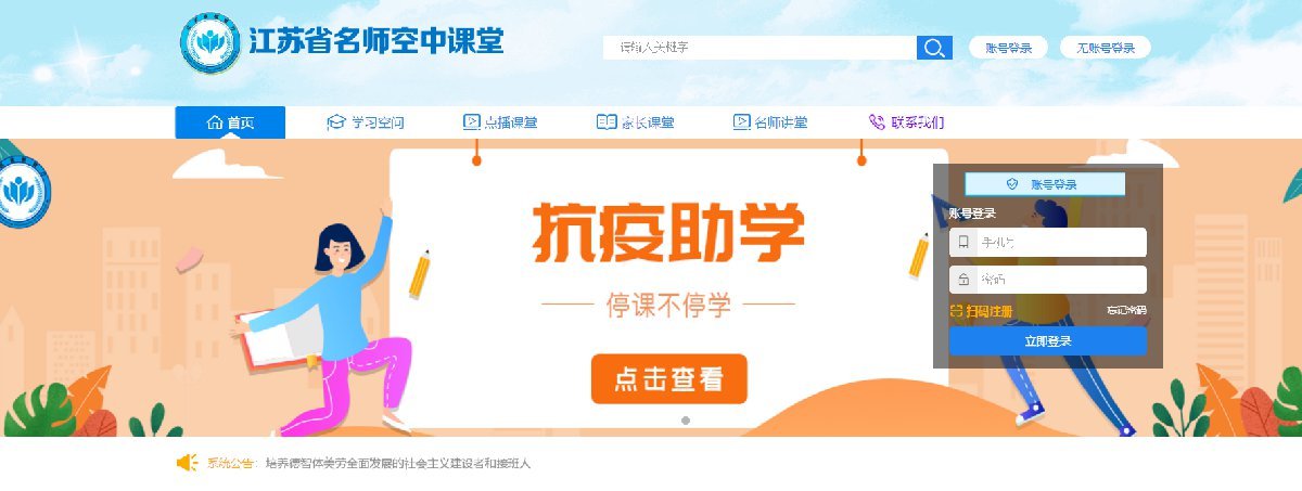 为确保学生“停课不停学”,江苏省教育厅组织专家拍摄和遴选了“抗疫助学”系列课程,在省名师空中课堂的“”和“”同时播出,供中小学生在家自主学习和师生居家生活与锻炼使用。