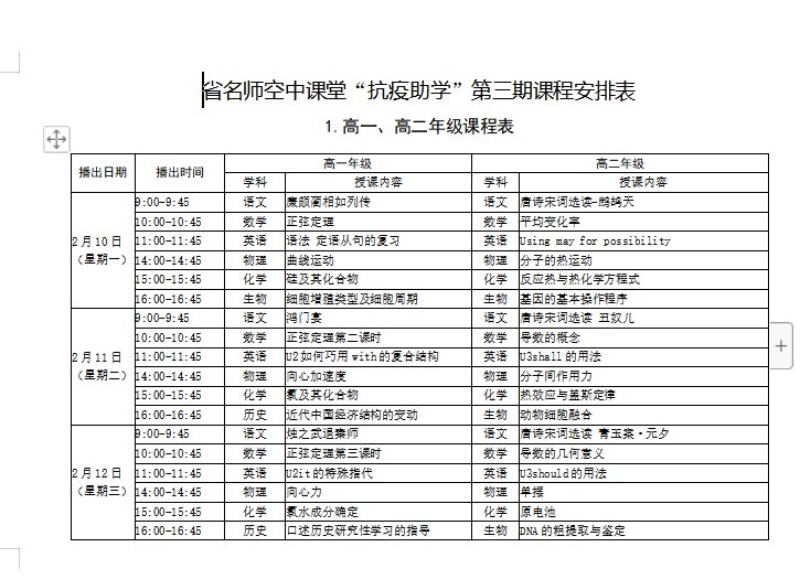 江苏省名师空中课堂抗疫助学第三期课程安排表: