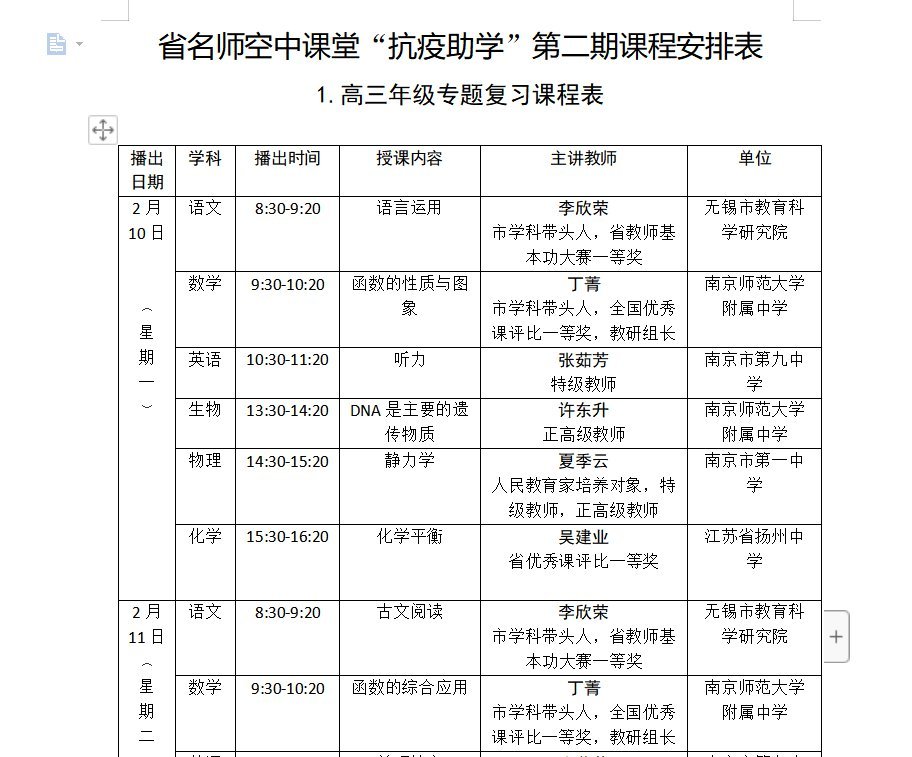 将于2月10日8:30准时上线,是由省教育厅调集省内名特优教师主要针对初三高三毕业班推出专题复习课“学习任务”“知识框架”“典型案例”“配套练习”。