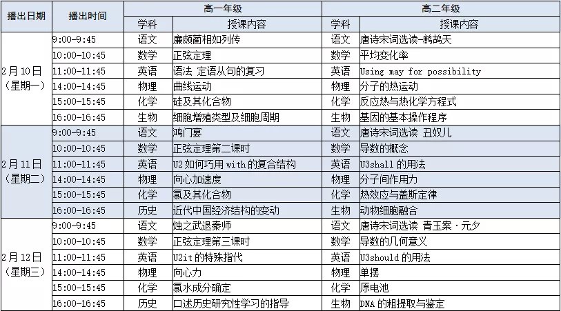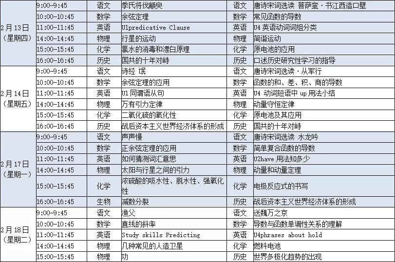 江苏空中名师课堂2020年高一高二直播课一览