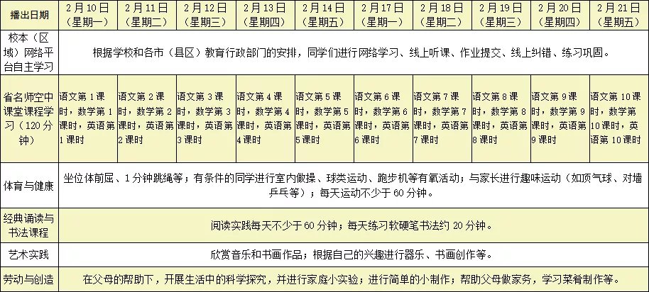 “抗疫助学”课程将在省名师空中课堂的“”和“”同时播出,供中小学生在家自主学习和师生居家生活与锻炼使用。