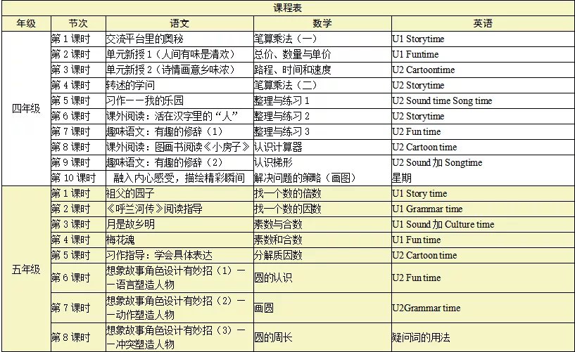 小学4-6年级自主学习安排表