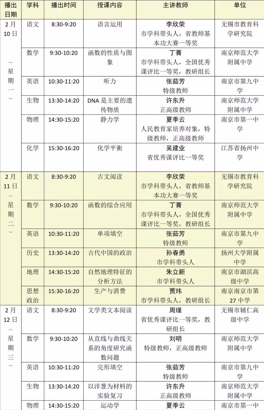 2020江苏省名师空中课堂高三直播课表(2021年江苏省名师空中课堂)