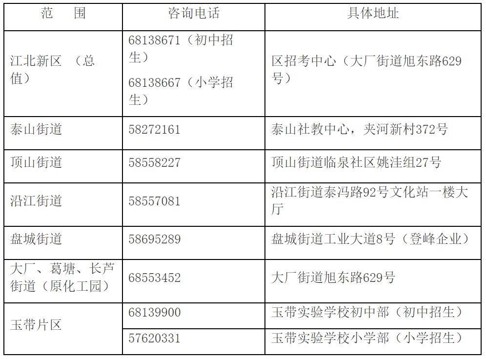 1.江北新区2020年招生咨询点地址及咨询电话