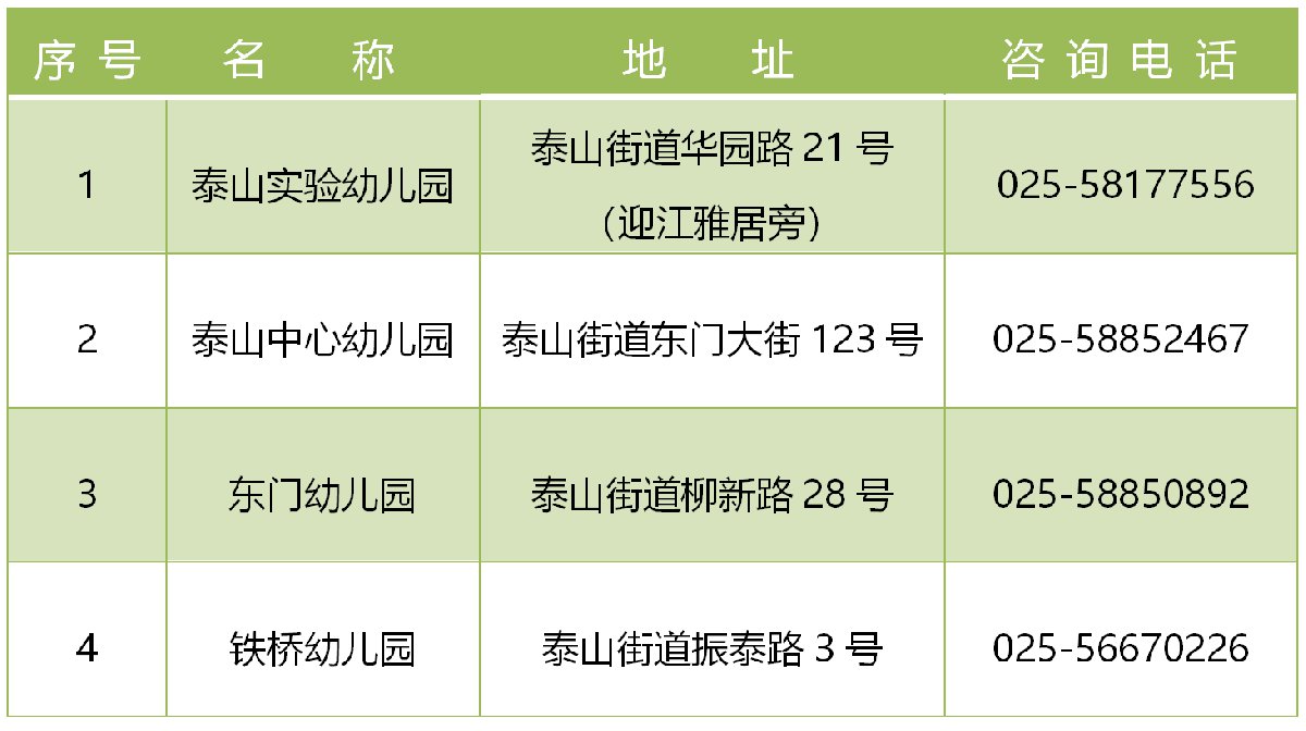 南京泰山街道公办幼儿园2020年报名咨询地址+电话
