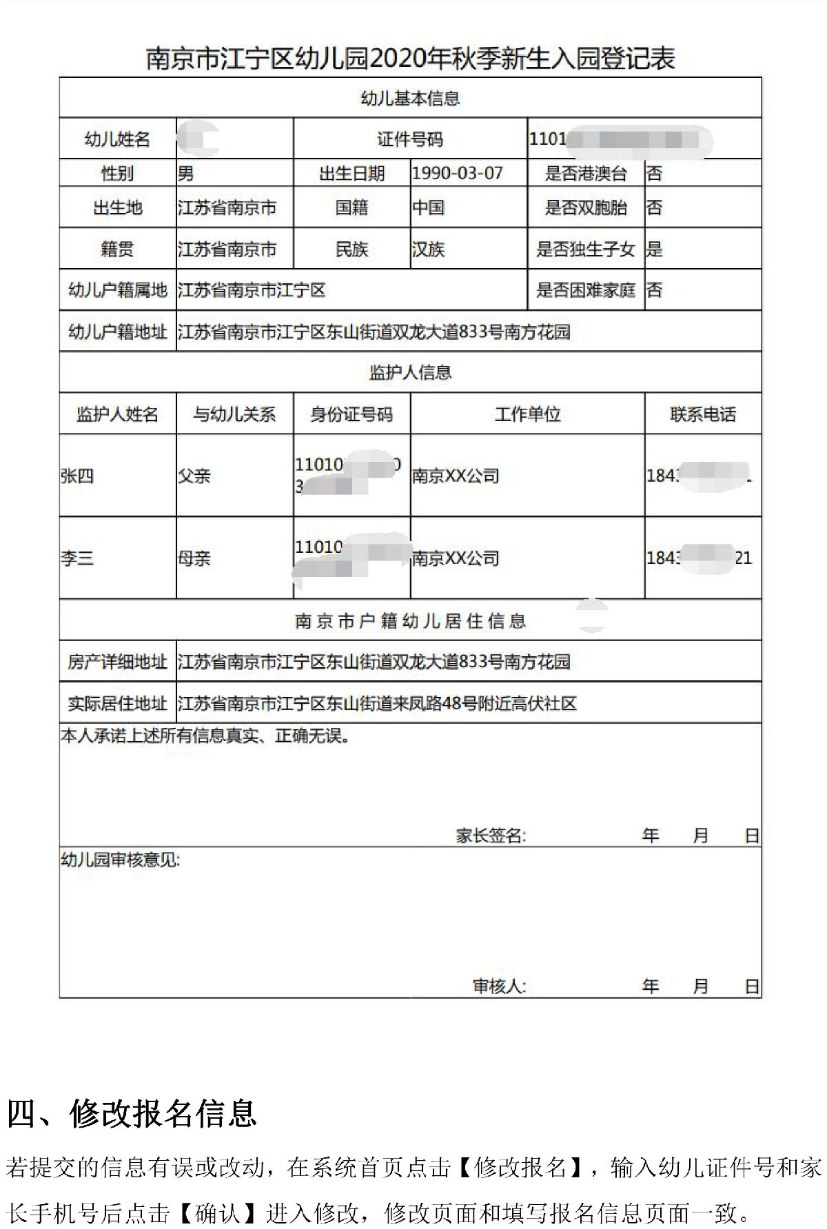 南京顶山街道公办幼儿园2020年秋季新生报名登记表下载入口