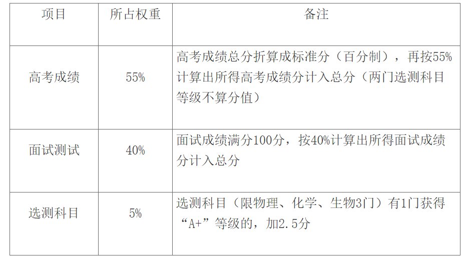 2.采取高考成绩、综合评价录取面试成绩、专业特色加分加权综合测算的方法取得考生最终成绩,按最终成绩从高到低排序,按照分数优先原则录取,录满规定的计划数为止。