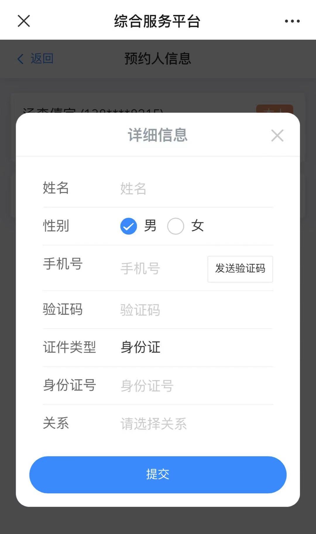 3、添加预约人信息选择添加家庭成员并输入详细信息
