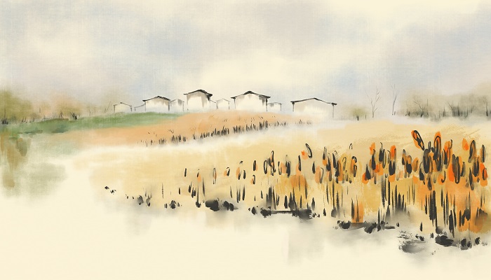 译文为:“白天在田里锄草,夜晚在家中搓麻线,村中男男女女各有各的家务劳动。小孩子虽然不会耕田织布,也在那桑树阴下学着种瓜。”诗人用清新的笔调,对农村初夏时的紧张劳动气氛,做了较为细腻的描写,读来意趣横生。