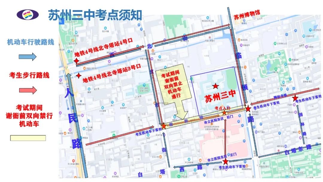 学校周边地铁6号线施工,交通压力较大,请考生、家长以及送考老师尽量绿色出行,或开车将考生送至学校附近,考生步行至考点。