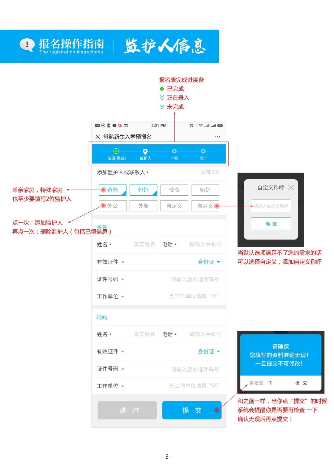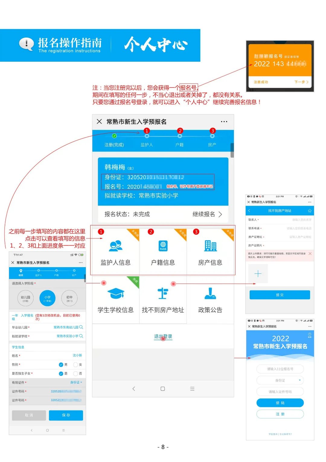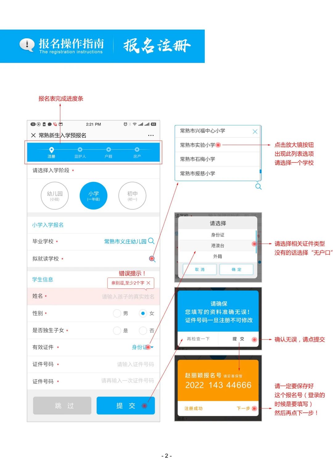 幼升小、小升初新生预报名工作在12月23日至12月31日集中进行(由学生所在幼儿园及小学组织开展);入读幼儿园小班的新生预报名工作在1月6日至1月15日集中进行。在集中预报名时间段内,全市各校(园)设立咨询岗接受家长咨询,提供相应服务。如错过各学段集中预报名工作时间,家长可在后续每周四、周五下午前往对应学校(幼儿园)进行咨询寻求帮助(有能力的可自学操作手册自行完成)。各校(园)电话可通过关注“常熟教育”微信公众号,在公众号底部“微服务”栏目中查找各校招生热线信息。