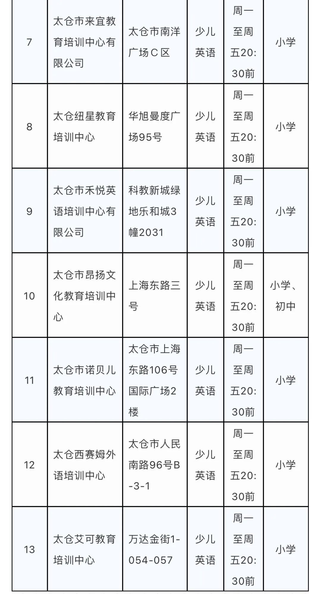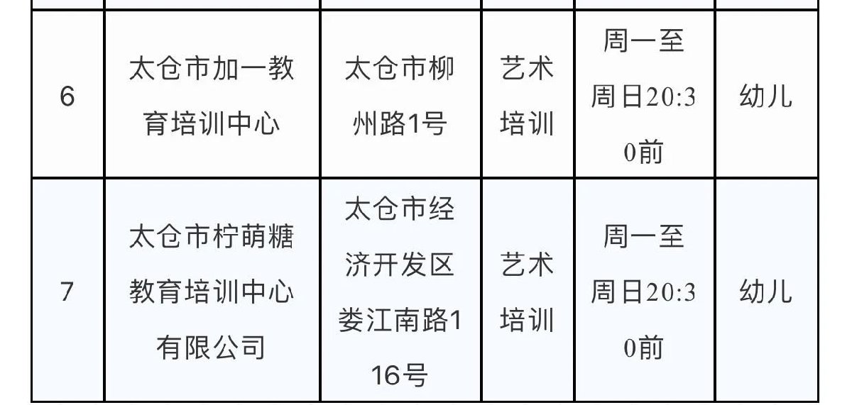 太仓市准许恢复线下培训的校外培训机构名单(一)