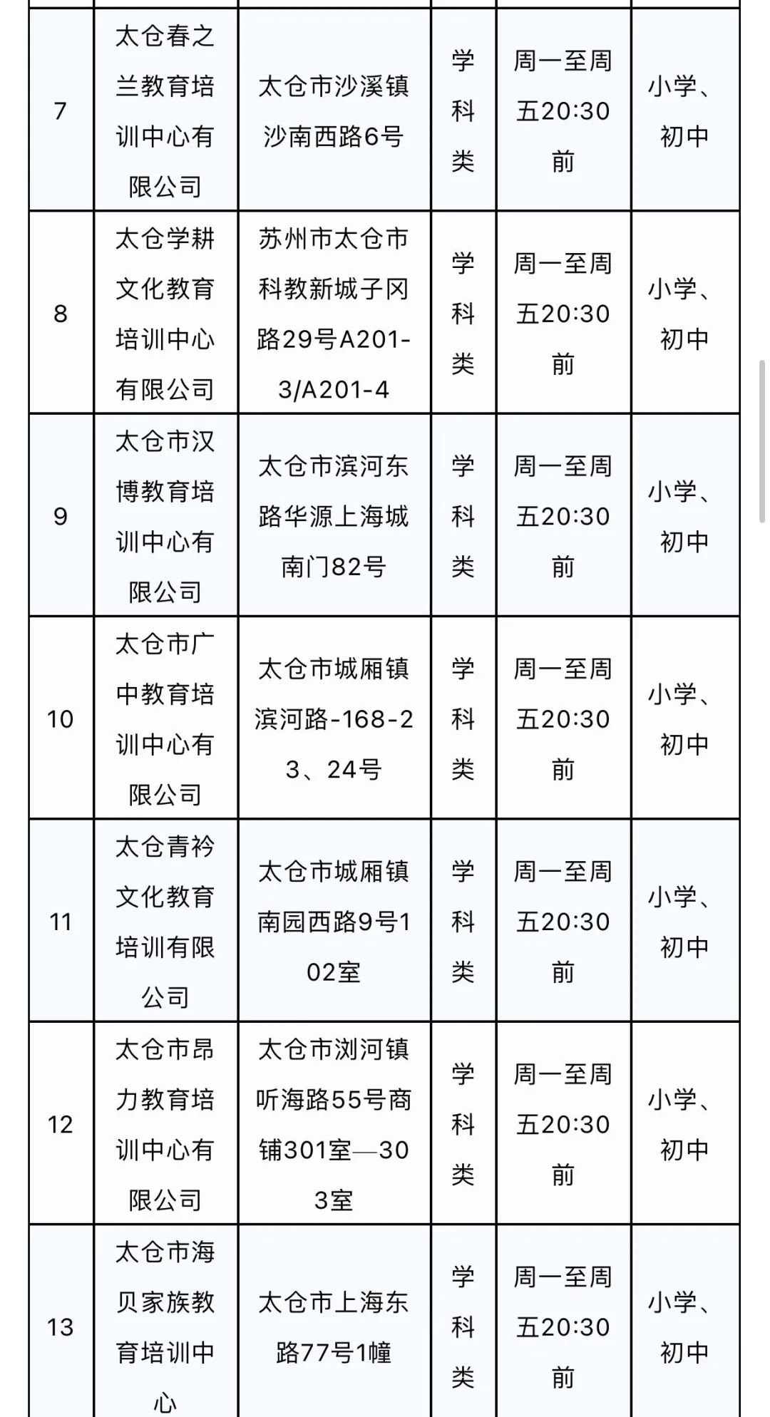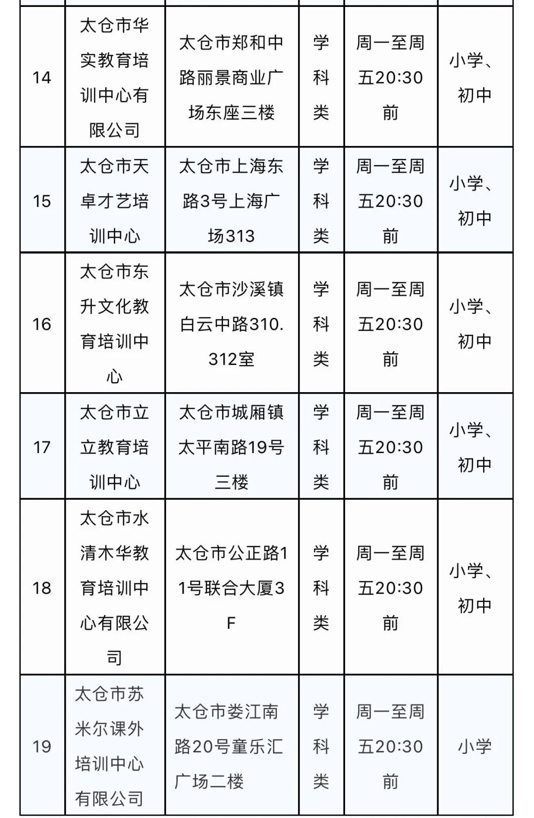 太仓市准许恢复线下培训的校外培训机构名单(三)