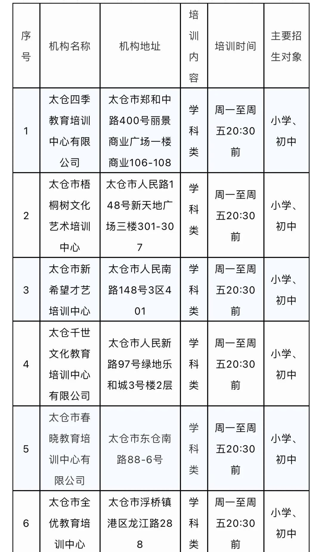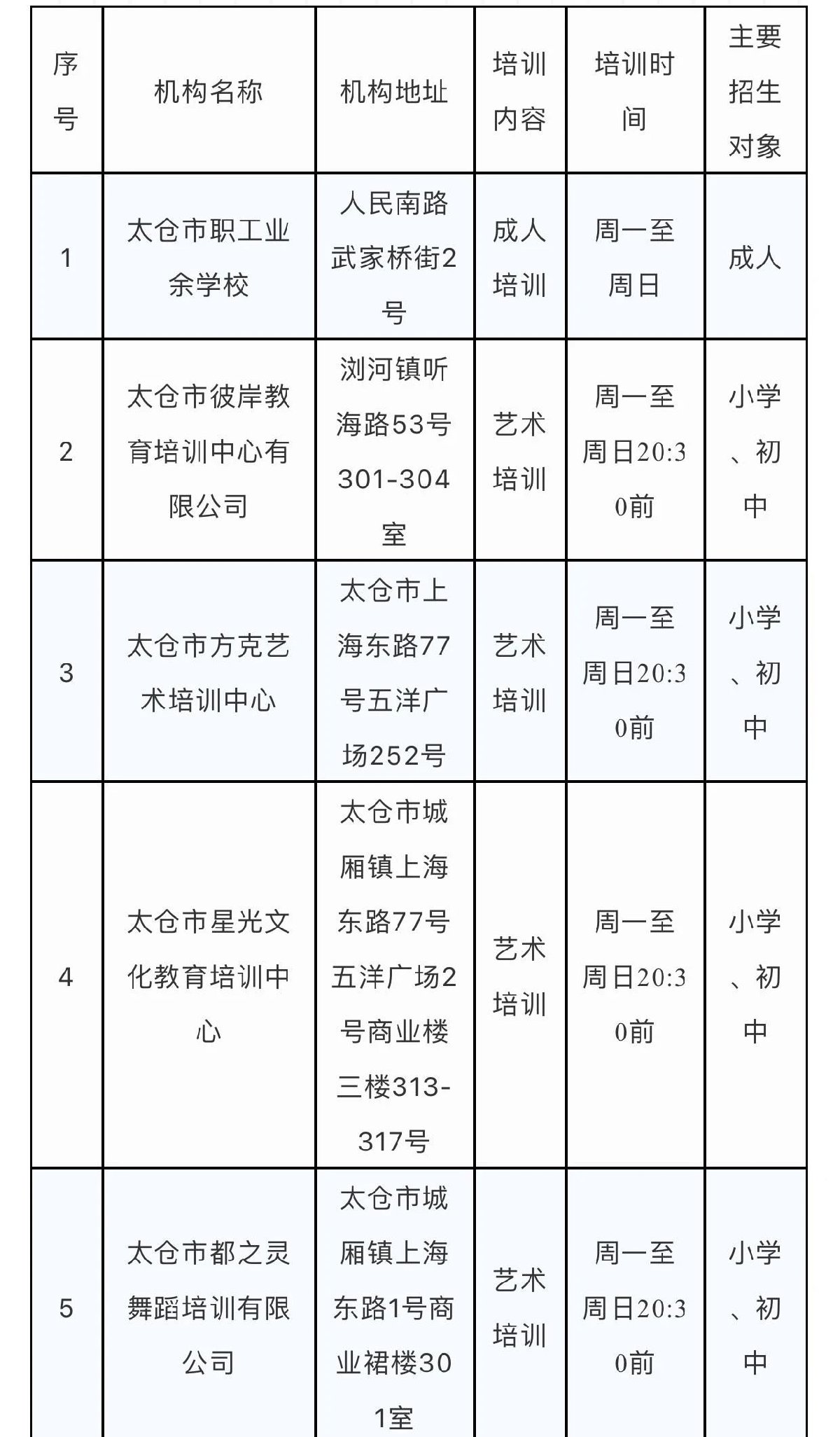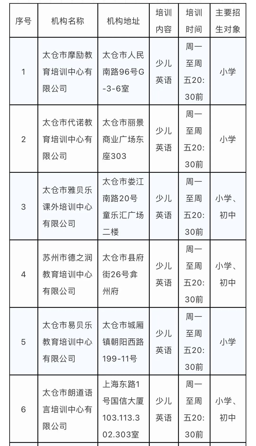 太仓市准许恢复线下培训的校外培训机构名单2021