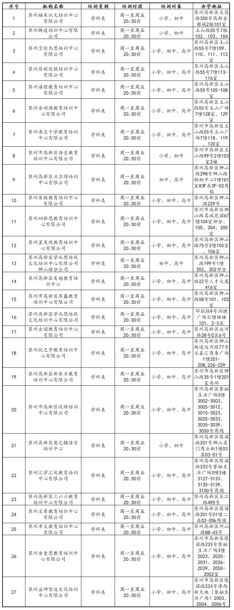 高新区恢复线下培训的校外培训机构名单公布(第三批)