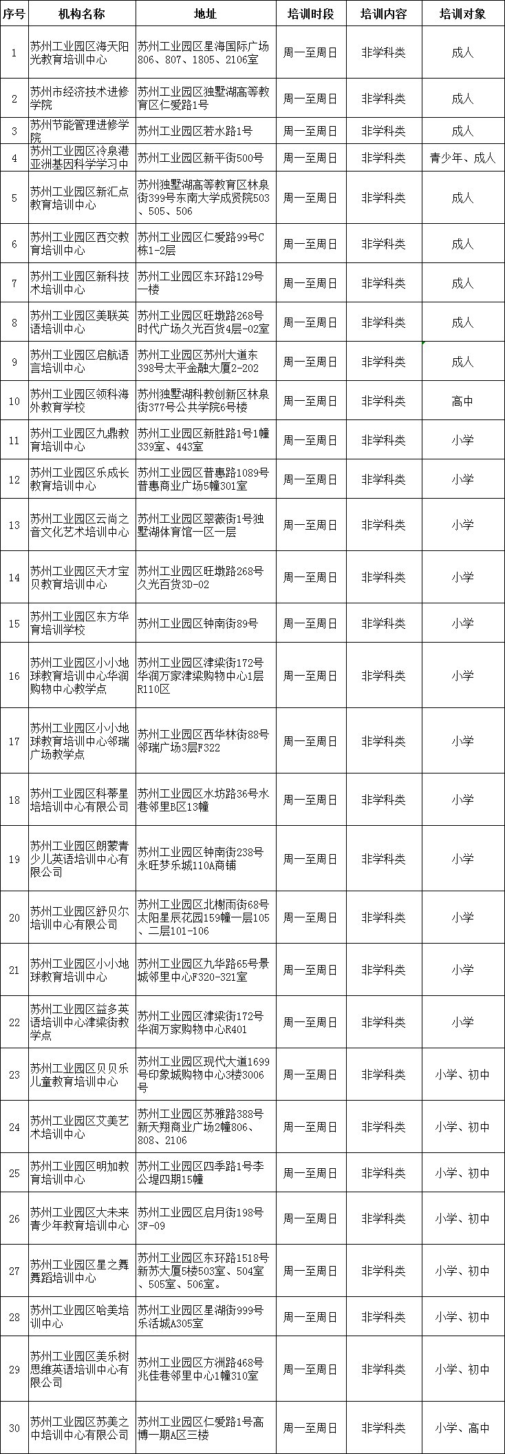 苏州工业园区准许恢复线下培训的校外机构名单(非学科类)