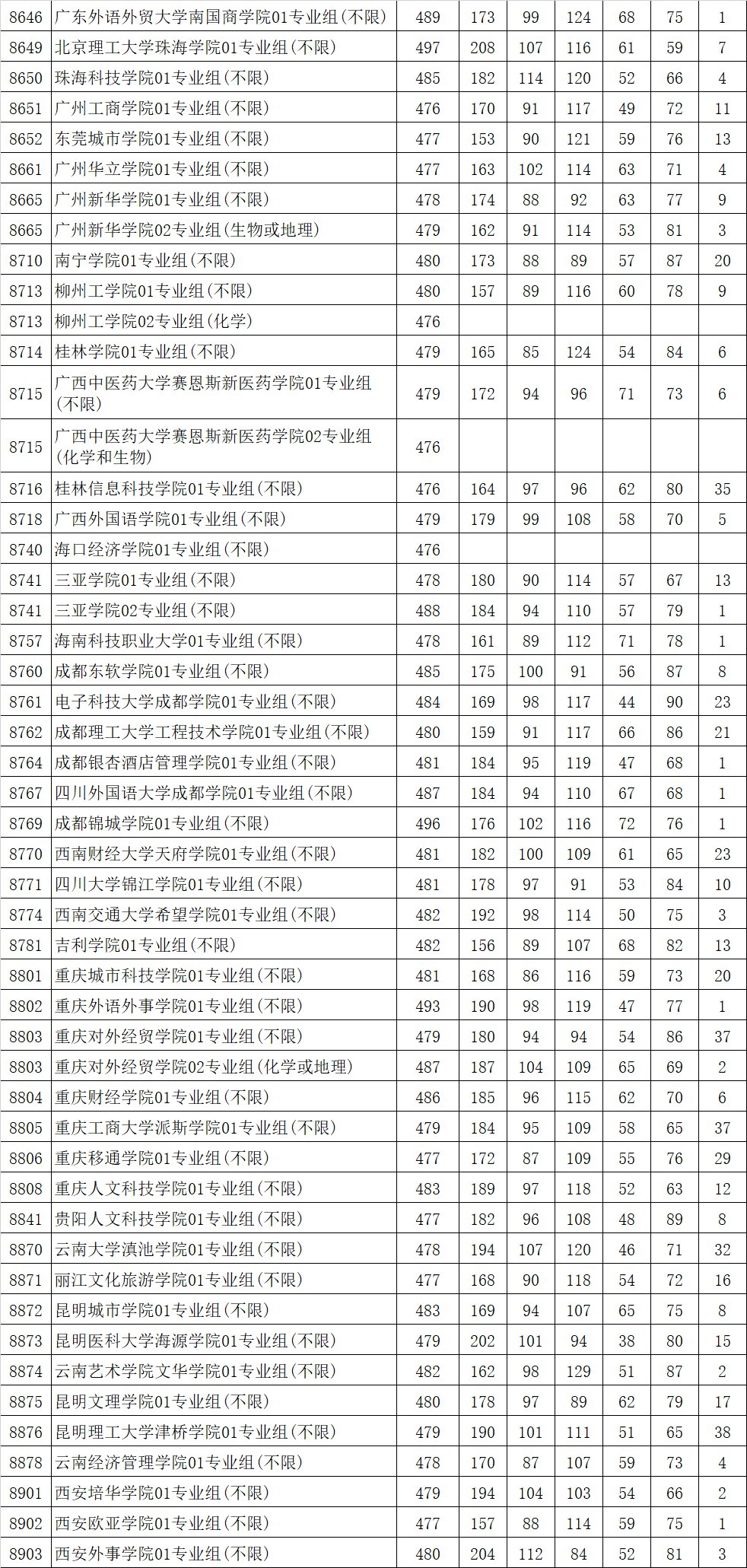 江苏省2021年普通高校招生普通类本科批次平行志愿投档线