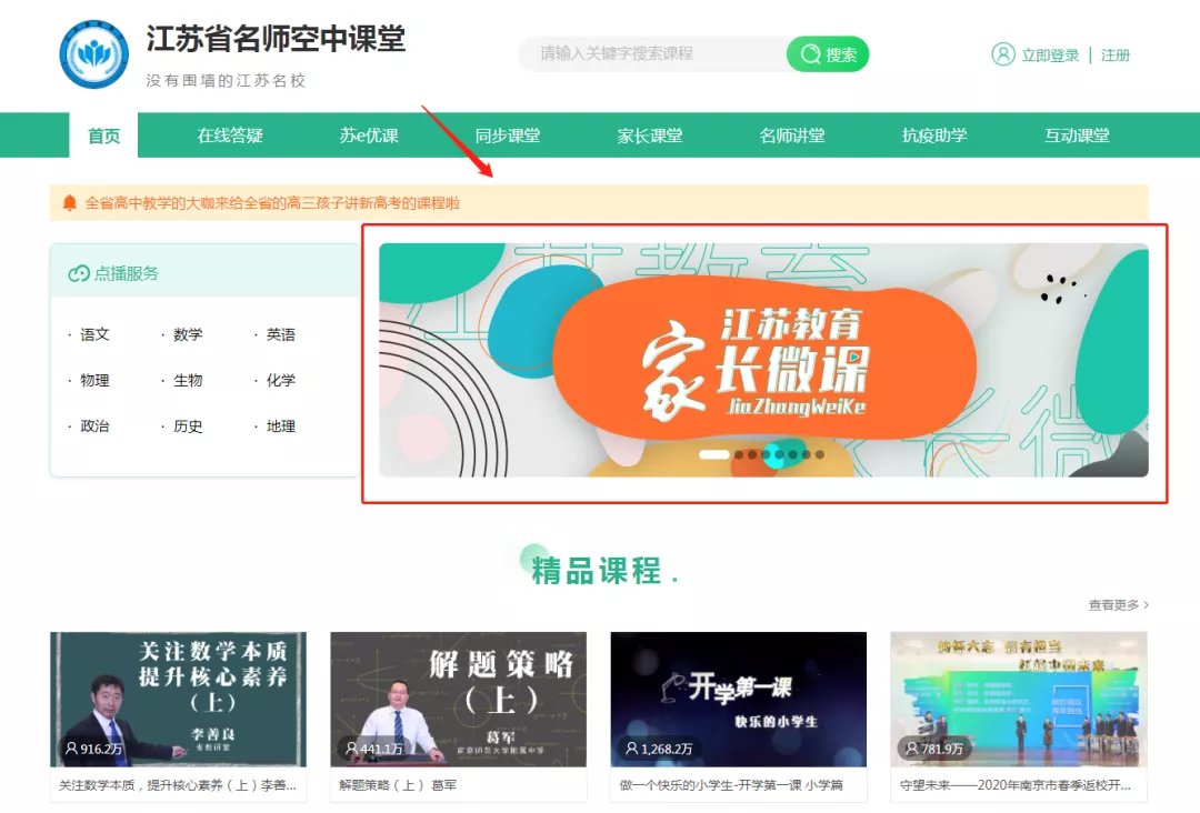 2、观看方式:点击首页“江苏教育家长微课”banner图片,进入专栏页面观看学习。