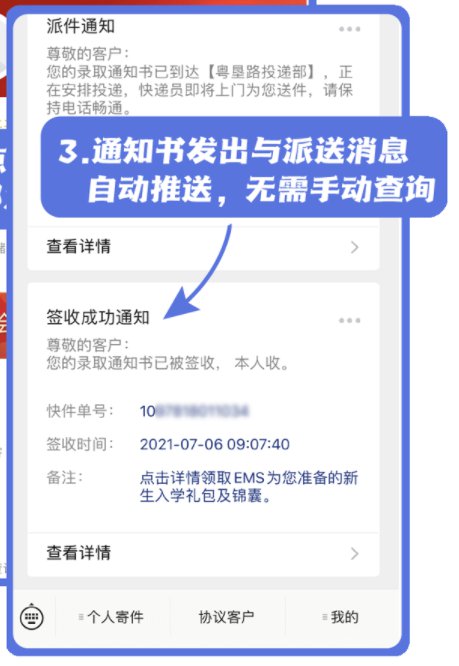 1、邮件状态自动提醒:手机号登录EMS微信公众号即刻享受邮件状态实时提醒。