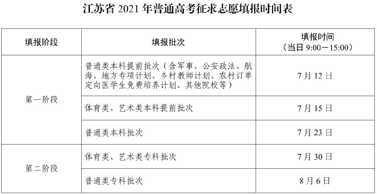 2021年江苏高考征求志愿填报时间表(2021年江苏高考征集志愿填报时间)