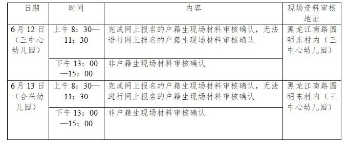 填报三中心幼儿园的本市户籍生请于6月12日上午持《昆山市幼儿园招生入园报名表》、身份证、户口簿、房产证、结婚证、婴儿出生证、预防接种证等相关证明材料到三中心幼儿园现场材料审核认定;非本市户籍生于6月12日下午持《昆山市幼儿园招生入园报名表》身份证、户口簿、房产证、结婚证、婴儿出生证、预防接种证和依法缴纳社会保险记录等相关证明材料到三中心幼儿园现场材料审核认定。
