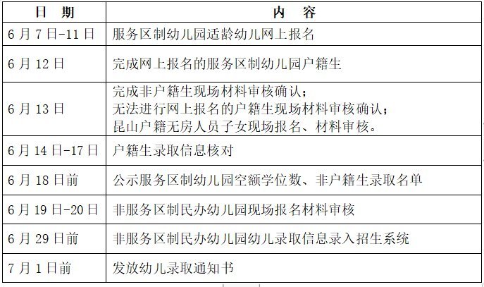 我园服务区域内的适龄幼儿,其父母或其他法定监护人于6月7日~6月11日登录“昆山市幼儿园、中小学招生入学填报系统”(网址:https://rx.ksedu.cn)进行填报,也可通过昆山市人民政府网(http://www.ks.gov.cn)的“招生入学”进入本系统填报,还可通过“智慧昆山”APP进行填报。非本市户籍的适龄幼儿,原则上其父母或其他法定监护人已取得房产证的,且在昆缴纳社保满一年的,可填报我园。