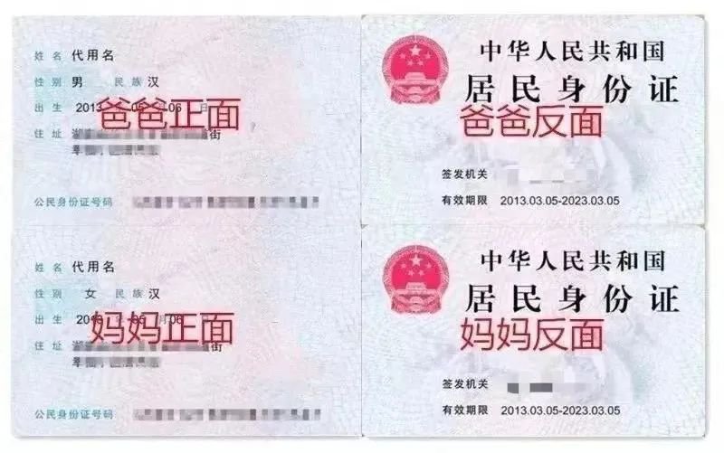 (5)法定监护人(父母双方)身份证拍摄示例(正反面均需拍摄)