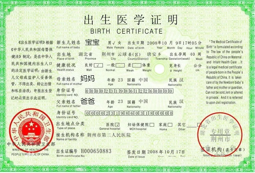 (1)幼儿出生医学证明拍摄示例