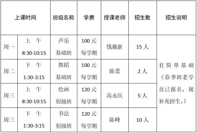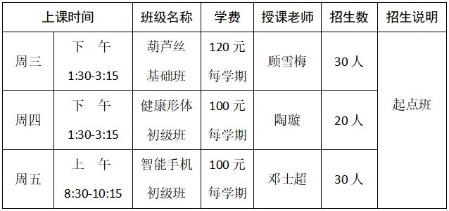 5.学费参照市老干部大学收费标准执行(开学后由市老年大学统一收费)。