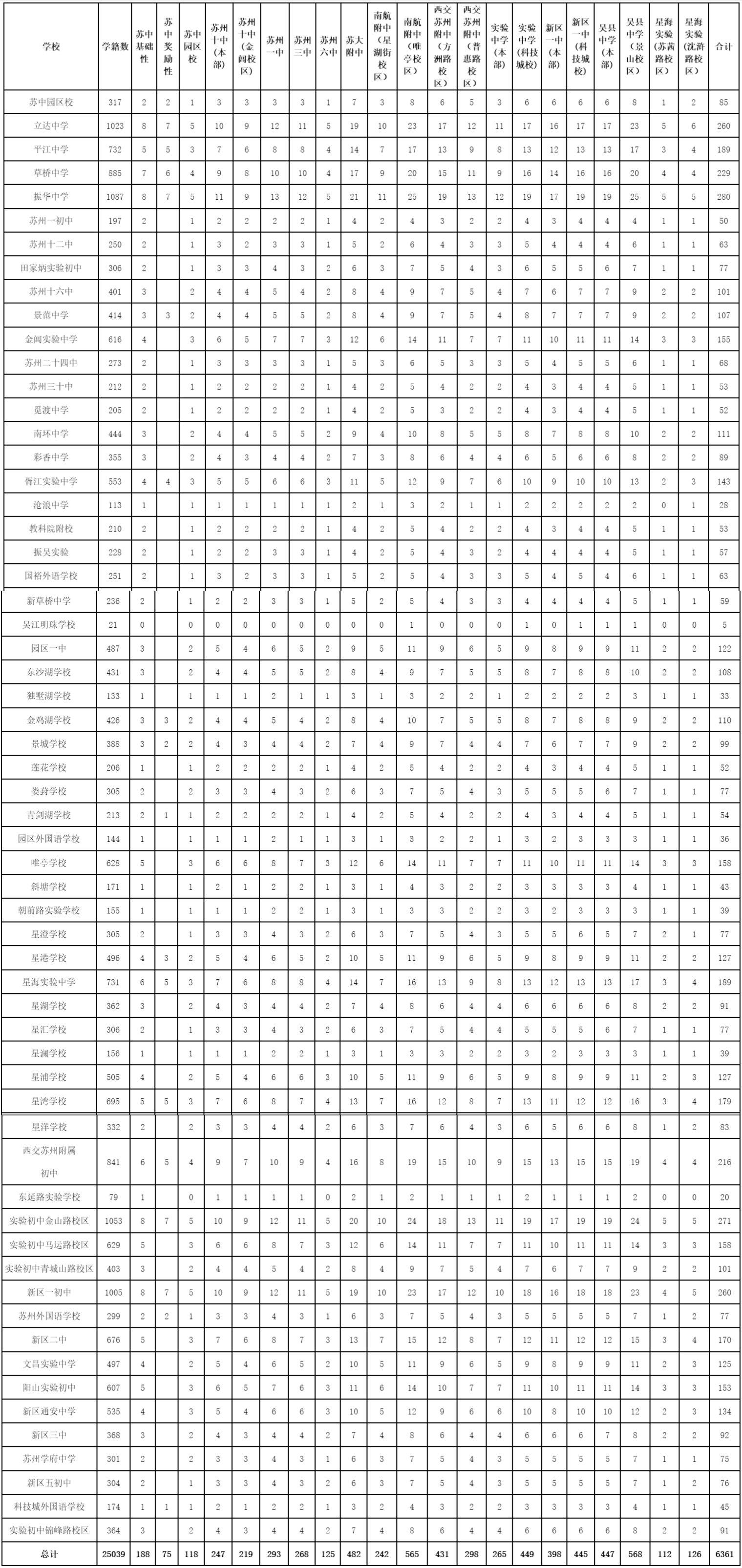 (一)今年江苏省苏州中学指标生比例为招生计划(不含园区校区)的70%,其中的50%进行基础性指标分配,投放到苏州市区所有初中学校;其余的20%实施奖励性指标分配,投放到苏州市区内涵丰富、课程多样、特色鲜明、学业较优等综合办学水平较高的初中校。
