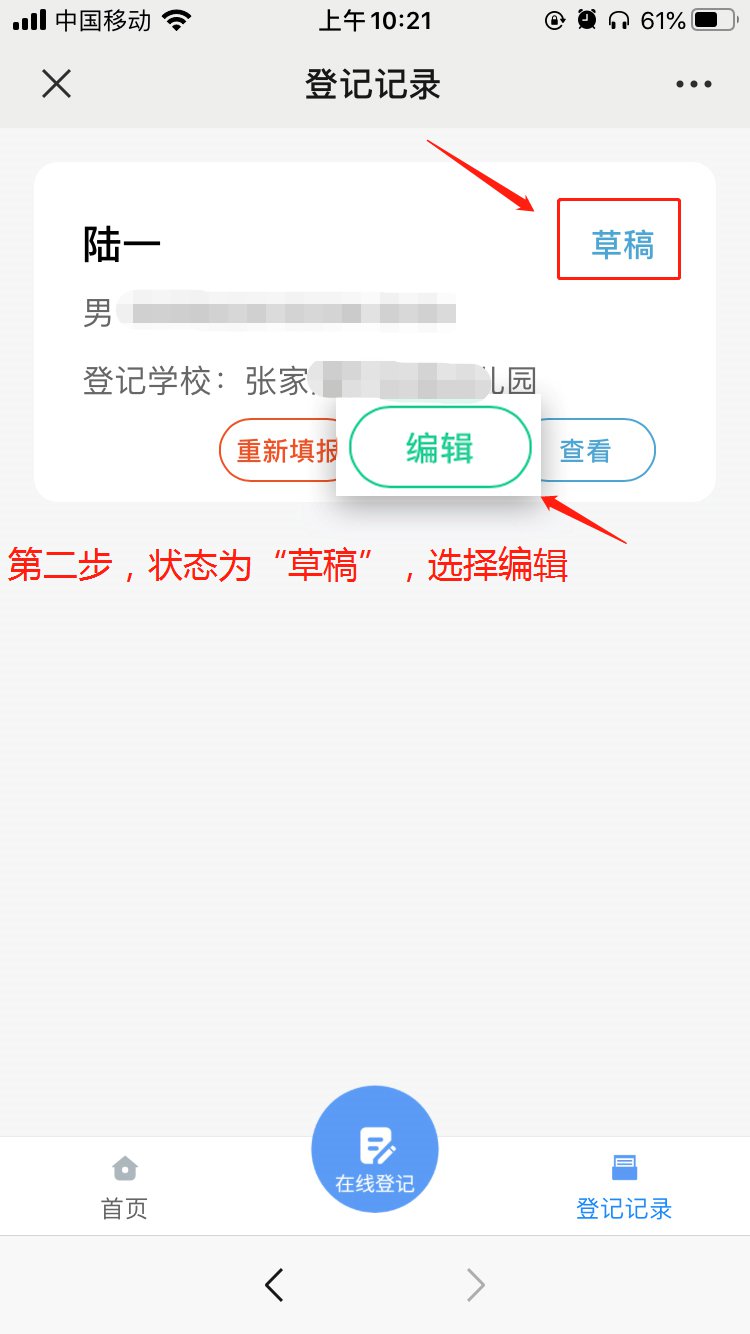 如果提示提交失败,该学生已存在登记记录,说明家长之前在填写登记表时曾退出。