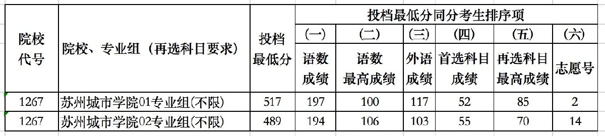 苏州城市学院2021年江苏省普通类本科批次投档线