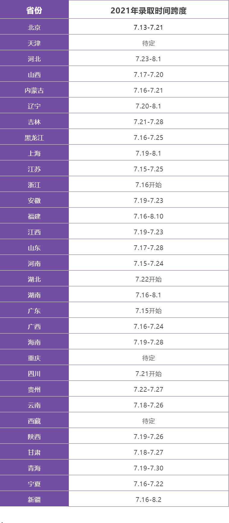 1. 实际录取时间以各地区教育主管部门要求为准。