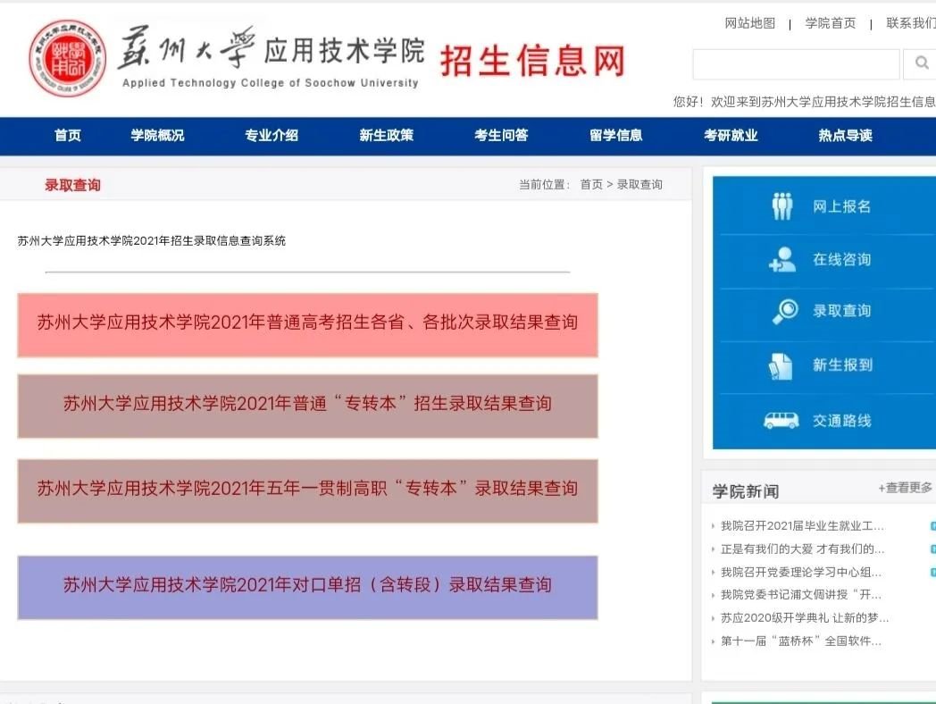 【2021年苏州大学应用技术学院录取查询方式】