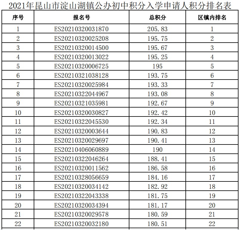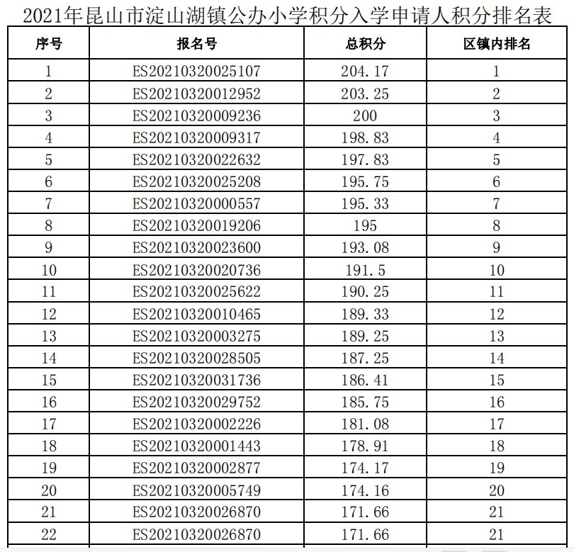 根据《昆山市新市民子女公办学校积分入学办法(修订)》的相关规定,各区镇积分排名已经正式公布: