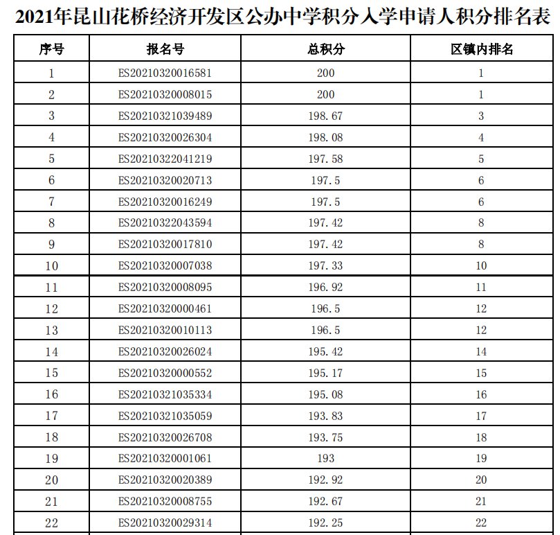 根据《昆山市新市民子女公办学校积分入学办法(修订)》的相关规定,各区镇积分排名已经正式公布: