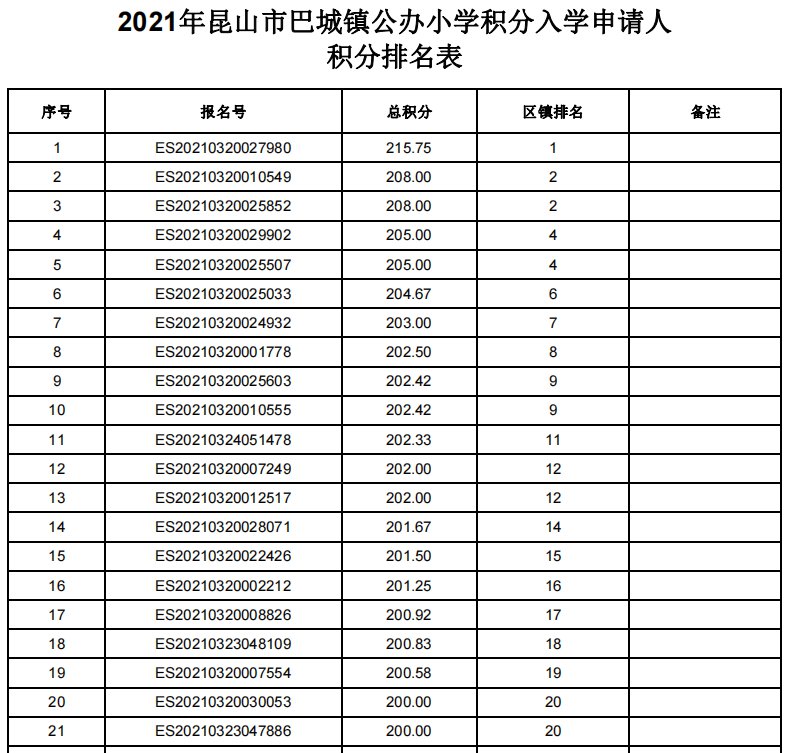 根据《昆山市新市民子女公办学校积分入学办法(修订)》的相关规定,各区镇积分排名已经正式公布: