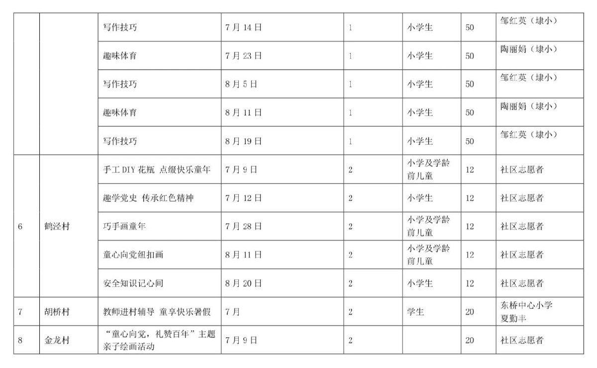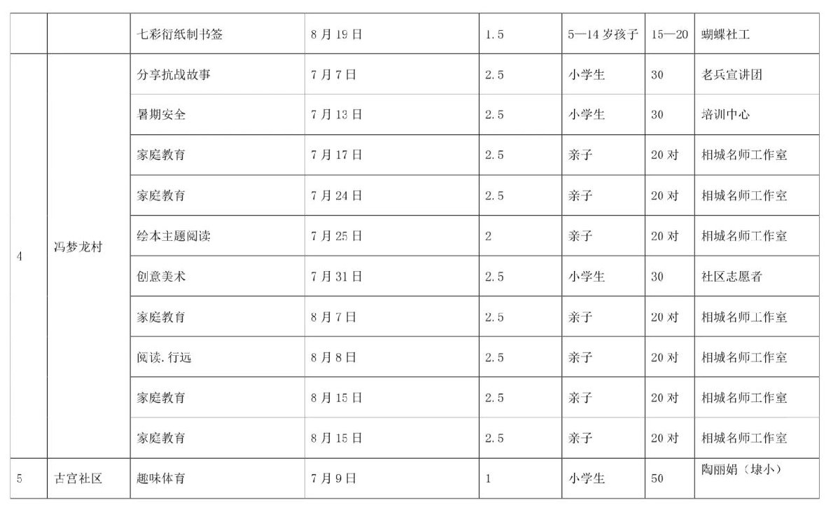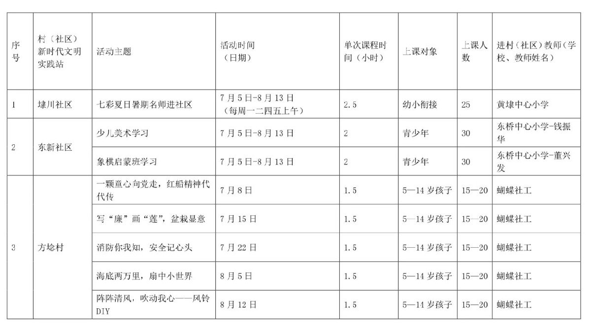 开设点位和活动课程表: