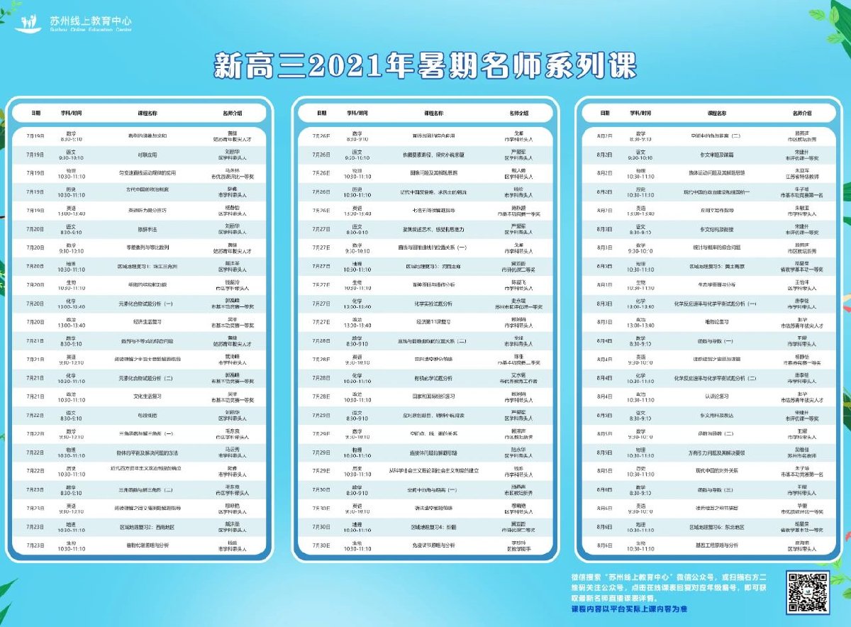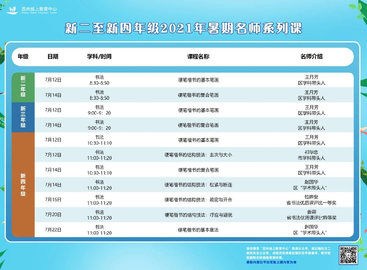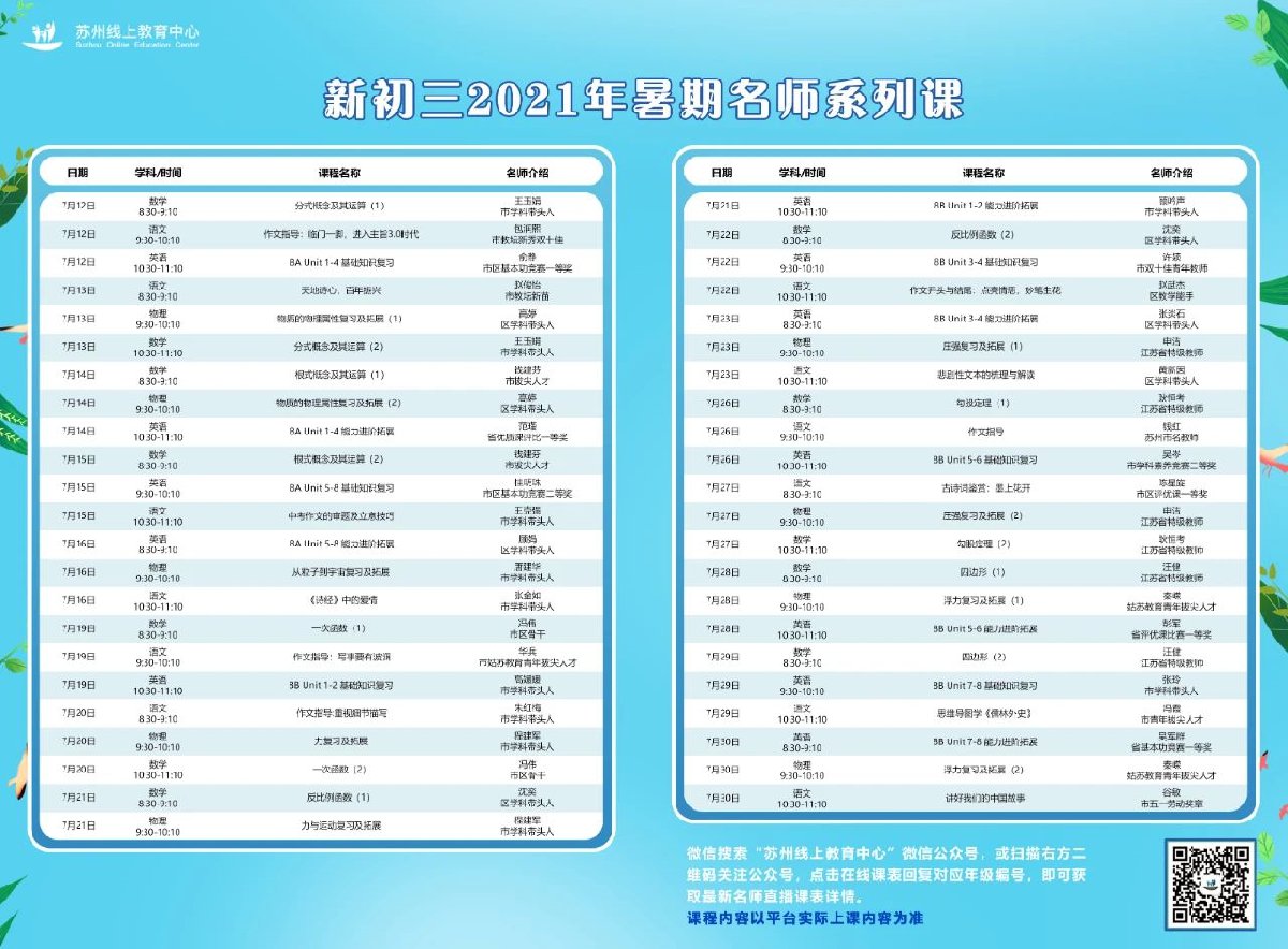 2021年苏州中小学暑假网课课表一览(苏州中小学上课时间表)
