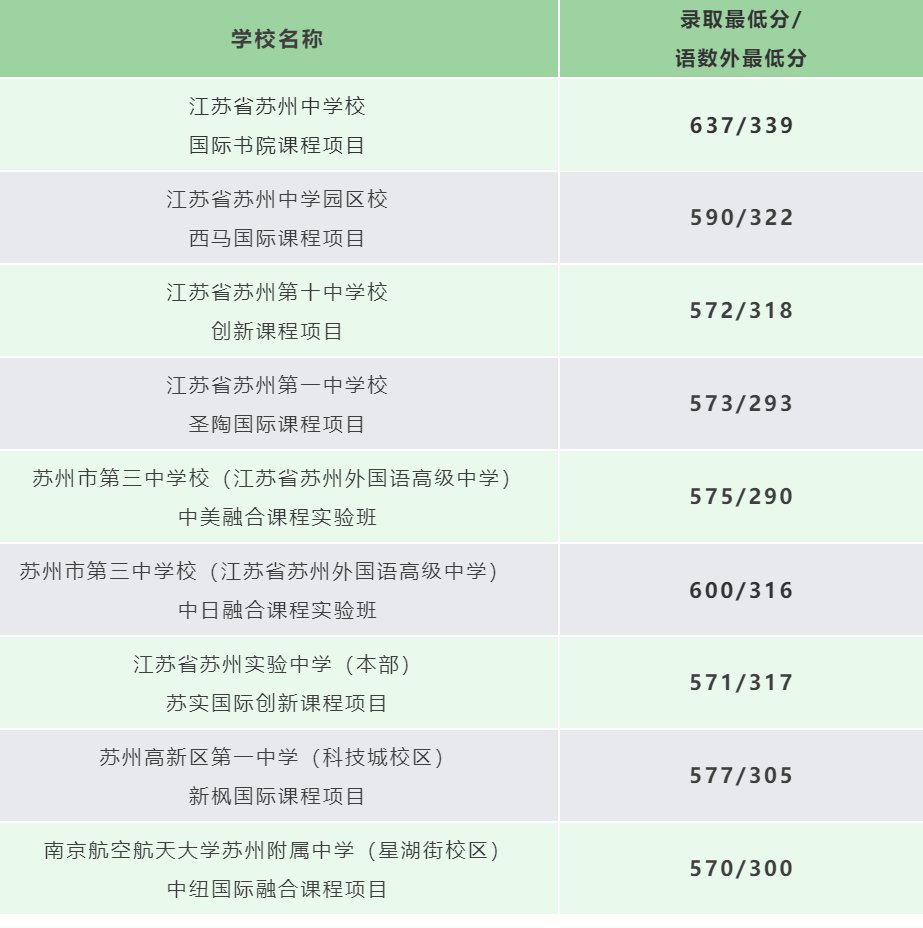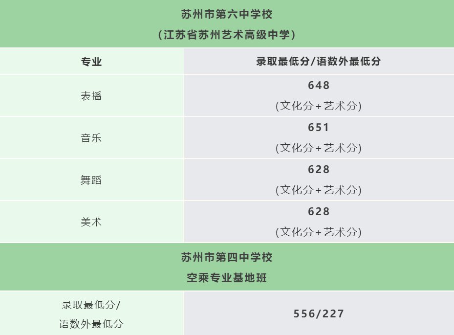 2021年苏州市区高中段招生提前录取批次各校录取最低分公布如下: