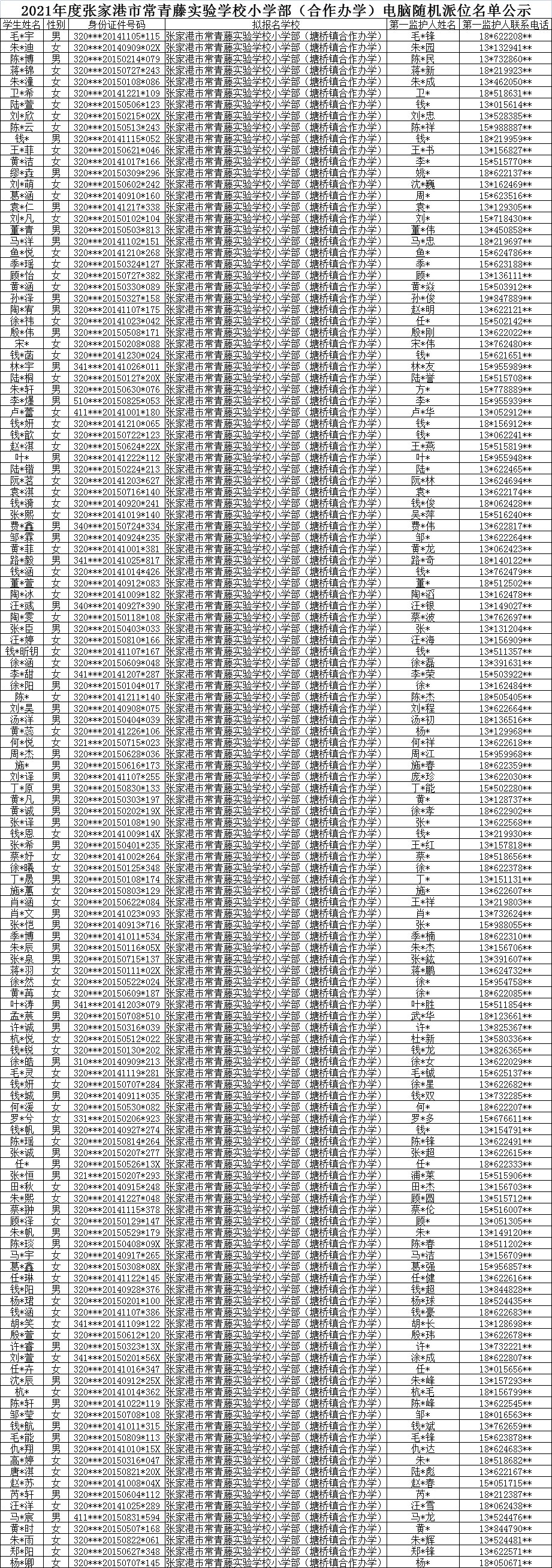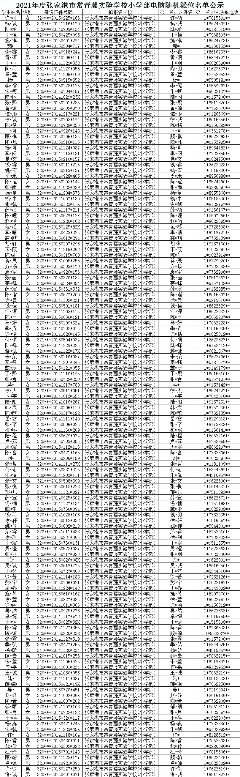 2021年常青藤实验学校小学部摇号录取名单出炉
