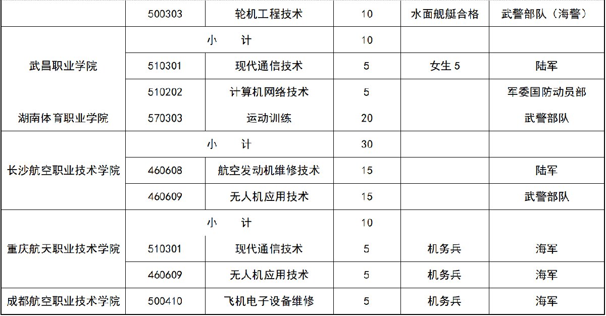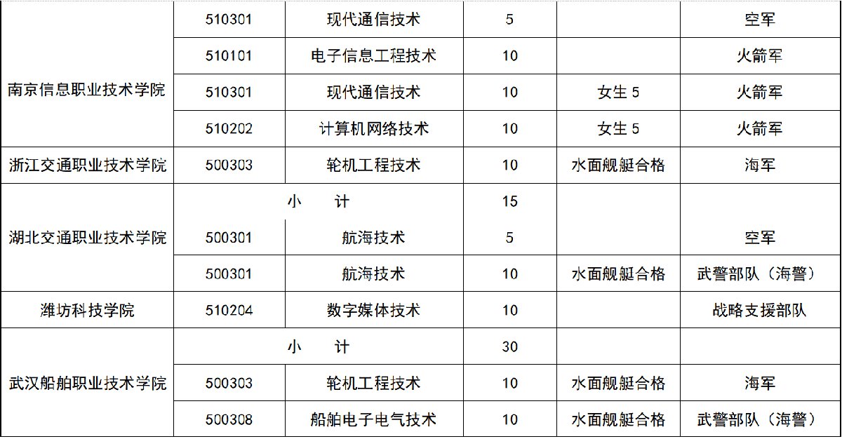 在国家核定的48所地方高校2021年高职(专科)层次招生计划内,面向我省生源为解放军和武警部队招收定向培养士官360人。