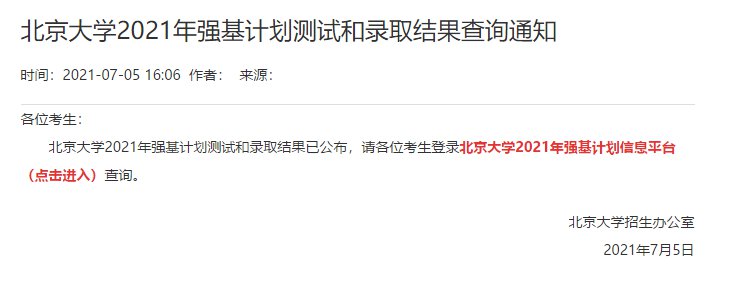 根据强基政策及各高校招生简章安排,2021强基计划录取结果将在7月5日前完成,其他学校预计在今明两天会陆续有结果,考生可密切关注报名系统信息。