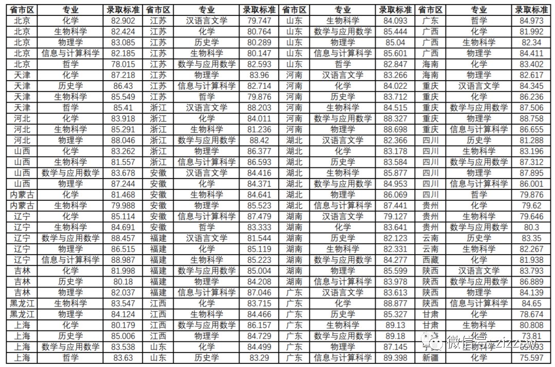 各高校公布的2021强基计划录取分数线,为核算后的综合成绩,其中高考成绩占85%、校考成绩占15%,具体核算办法及公式参见高校招生简章。