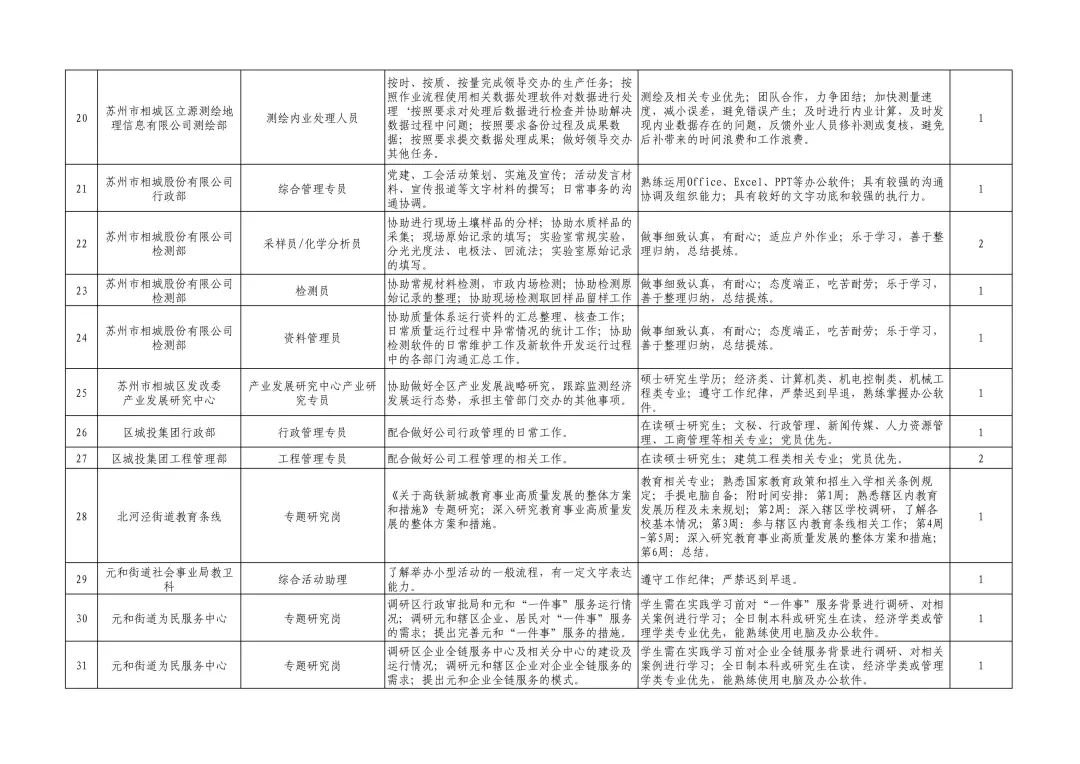 【2021年相城区“筑梦青春”返乡大学生暑期社会实践活动岗位征集一览】