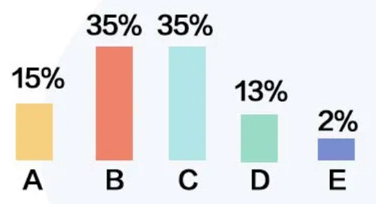 按照考生原始分从高到低划定A、B、C、D、E共五个等级,各等级人数所占比例分别约为15%、35%、35%、13%和2%,从而将考生的原始分转换成了等级。
