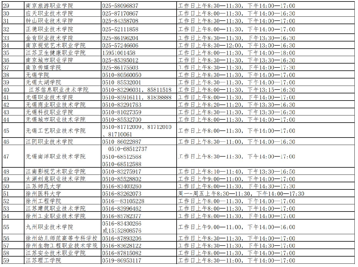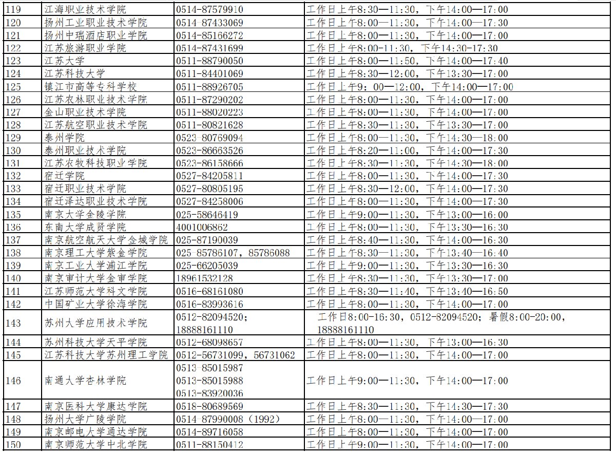 苏州市高校本专科生资助咨询电话汇总表