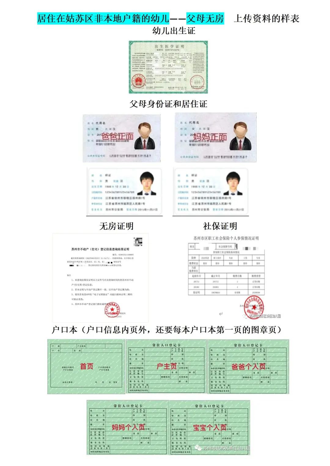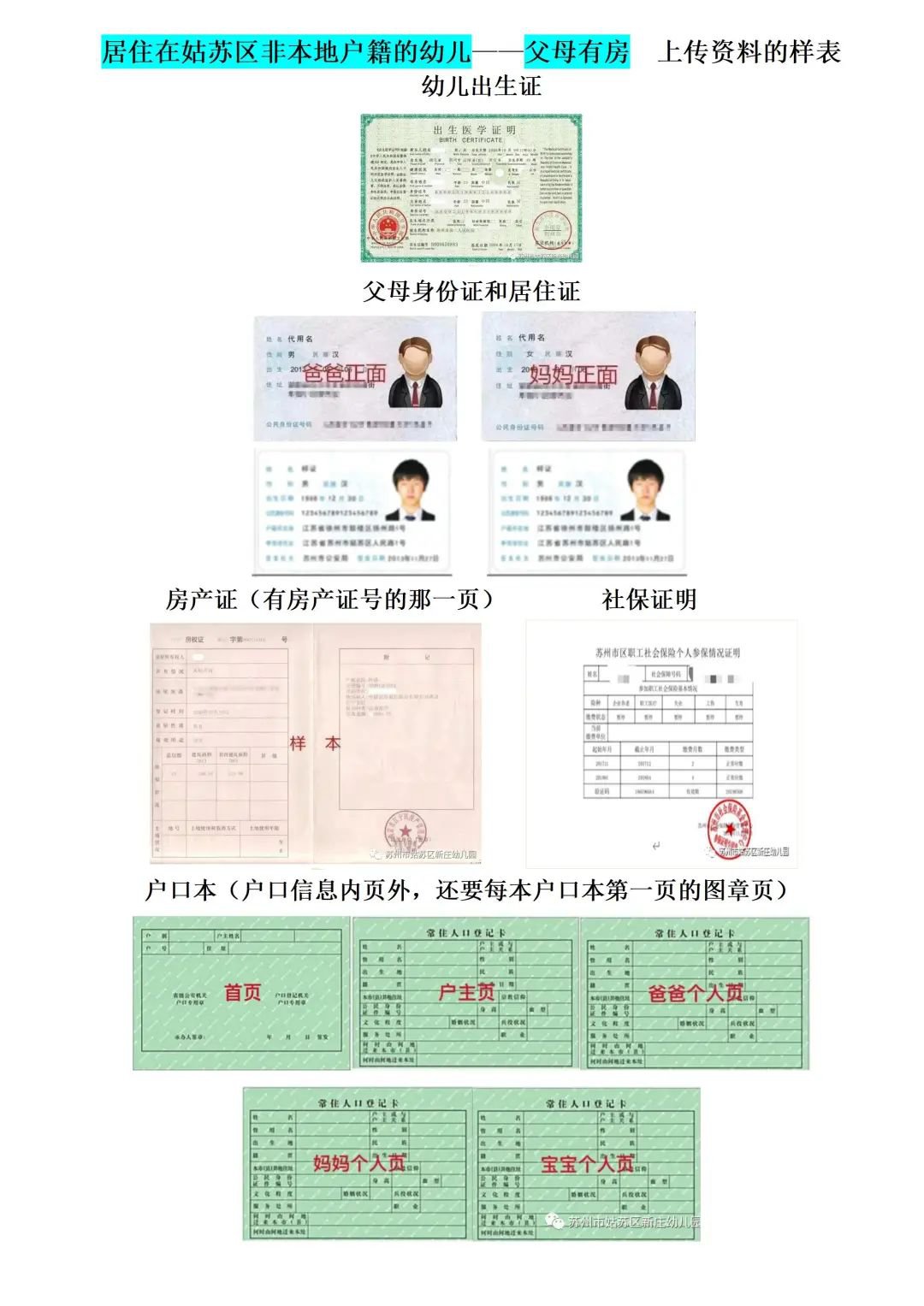 2.非本地户籍的幼儿,父母或其他监护人出具幼儿出生医学证原件、有效预防接种证原件、体检健康证( 体检健康证明于开学初收取)、户口簿原件、在苏合法固定住所产权证原件或购房合同原件;同时父母或者其他监护人还应提供外来人口有效居住证原件、 本人身份证原件、就业或其他合法经营( 营业执照 )原件、依法缴纳社会保险费半年以上记录材料。